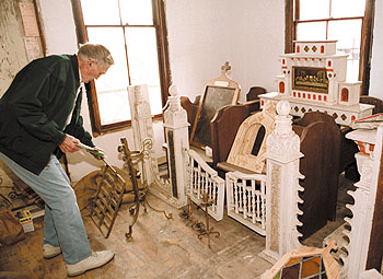 Howe stores fixtures from the chapel in the Newhall Ranch House during the chapel's renovation. Photo by Nathan Caswell/The Signal