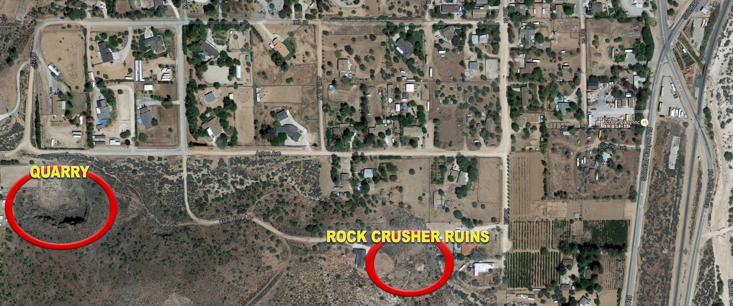 In 1909, some entrepreneurs purchased land from J.H. Walker south of the Acton School and spent much of 1910 hiring workers and building the crusher. They had a rough go of it; their bid to supply a large amount of concrete for county roads at 90 cents a ton lost out in April 1910 to an established Riverside competitor at 70 cents.