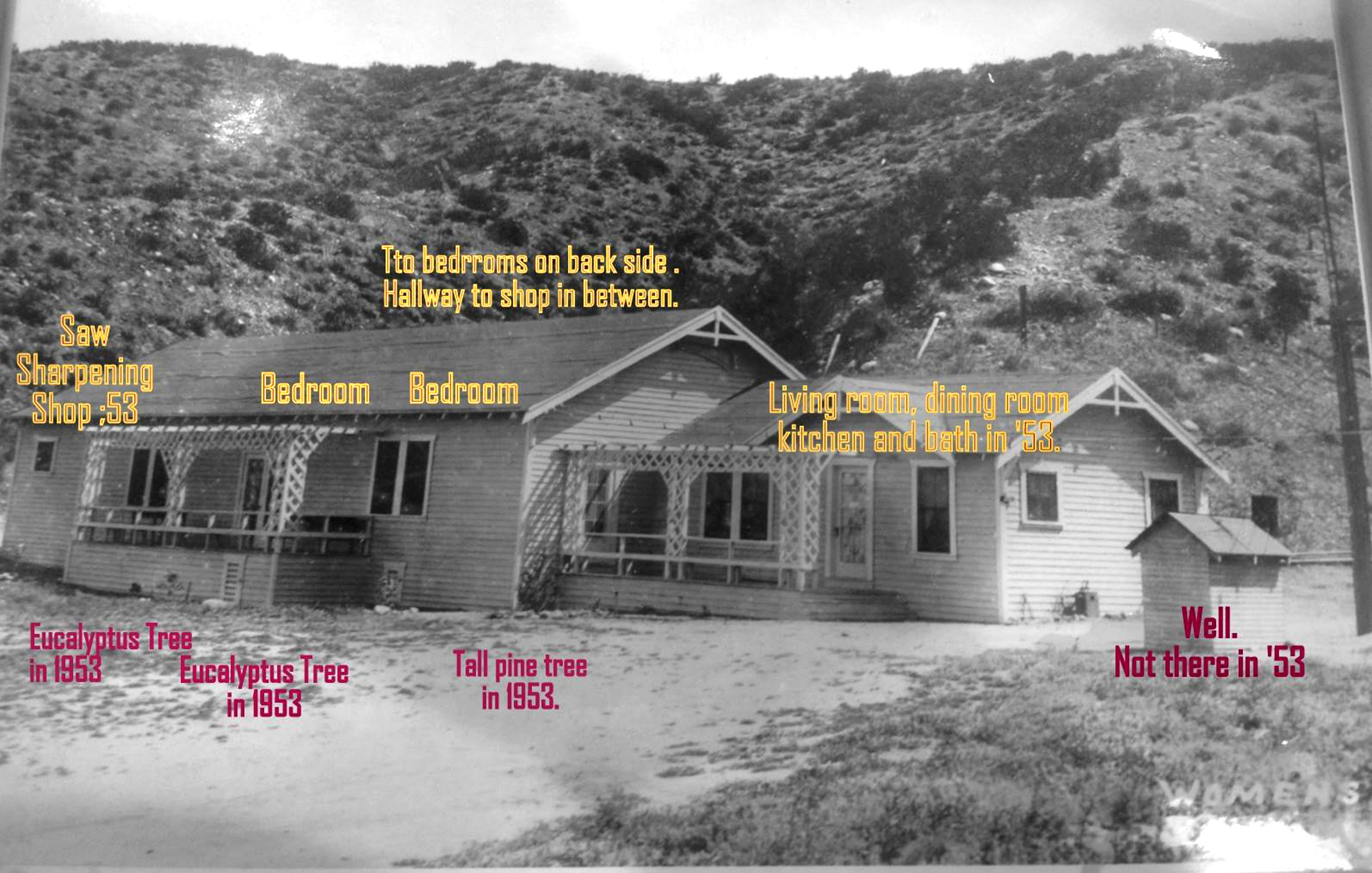 Building as utilized by Claude and Gwen Gillespie. Labeled by Don Ray based on information he obtained from the Gillespies' daughter, Andrea. Click to enlarge.