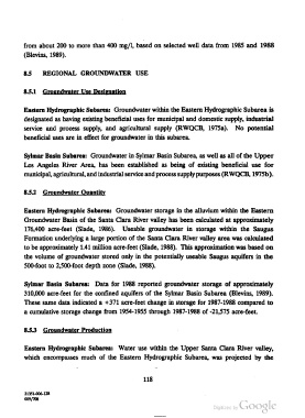 310,000 acre-feet for the confined aquifers of the Sylmar Basin Subarea (Blevins, 1989).
