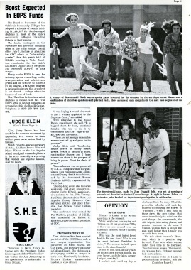 tive assistant to Sen. John Tunney; patriotic art show in the Student Center lounge. At right is Joanne Julian, art