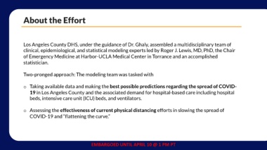 Los Angeles County DHS, under the guidance of Dr. Ghaly, assembled a multidisciplinary team of