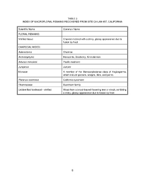 INDEX OF MACROFLORAL REMAINS RECOVERED FROM SITE CA-LAN-857, CALIFORNIA