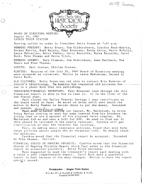 MINUTES: Minutes of the July 20, 1987 Board of Directors meeting