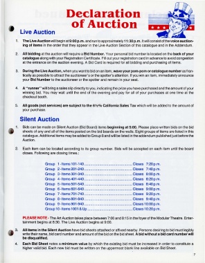 at the entrance on the auction evening. A Bid Card is required for all bidding and purchasing of items.