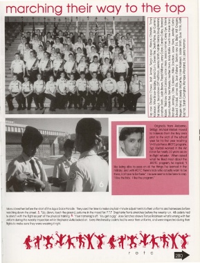 uniform during the weekly inspection while Stephanie Avila looked on. Every Wednesday cadets had to wear their uniforms, and were inspected during their