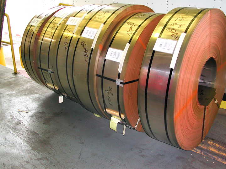 Each coil of metal is about 1,500 feet long and weighs approximately 6,000 pounds. Two manufacturers supply it to Denver and Philadelphia: 55 percent comes from PMX Industries of Cedar Rapids, Iowa, a subsidiary of the Korean firm Poongsan Corporation. The other 45 percent comes from Olin Brass of East Alton, Illinois, which also invented the alloy of manganese, brass and copper for the Sacagawea dollar (both companies provide it).