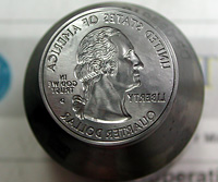 Upon arrival, the copper-nickel strip for 5-cent nickels and the copper-nickel clad or "sandwich" strip for dimes, quarters and half dollars are randomly quality-controlled for thickness and composition. Occasionally, clad samples are bent at a 90-degree angle to make sure the copper-nickel outer layers don’t separate from the pure copper core; sometimes they’re heated to make sure the surface doesn’t blister.