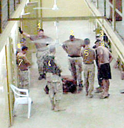 This photo, provided to The Associated Press by attorney Guy L. Womack, purportedly shows unidentified Army intelligence personnel cited as Nos. 4, 5, 7 and 8 interrogating an Iraqi detainee at Abu Ghraib prison last fall. Womack's client, Spc. Charles A. Graner Jr., faces criminal abuse charges and is identified here asNo. 1. AP/Courtesy of Guy L. Womackhree months after it completed its investigation of military police at Abu Ghraib prison in Iraq, the Army has launched a full investigation of the military intelligence personnel who oversaw them, an official at coalition headquarters in Baghdad told The Signal on Friday.